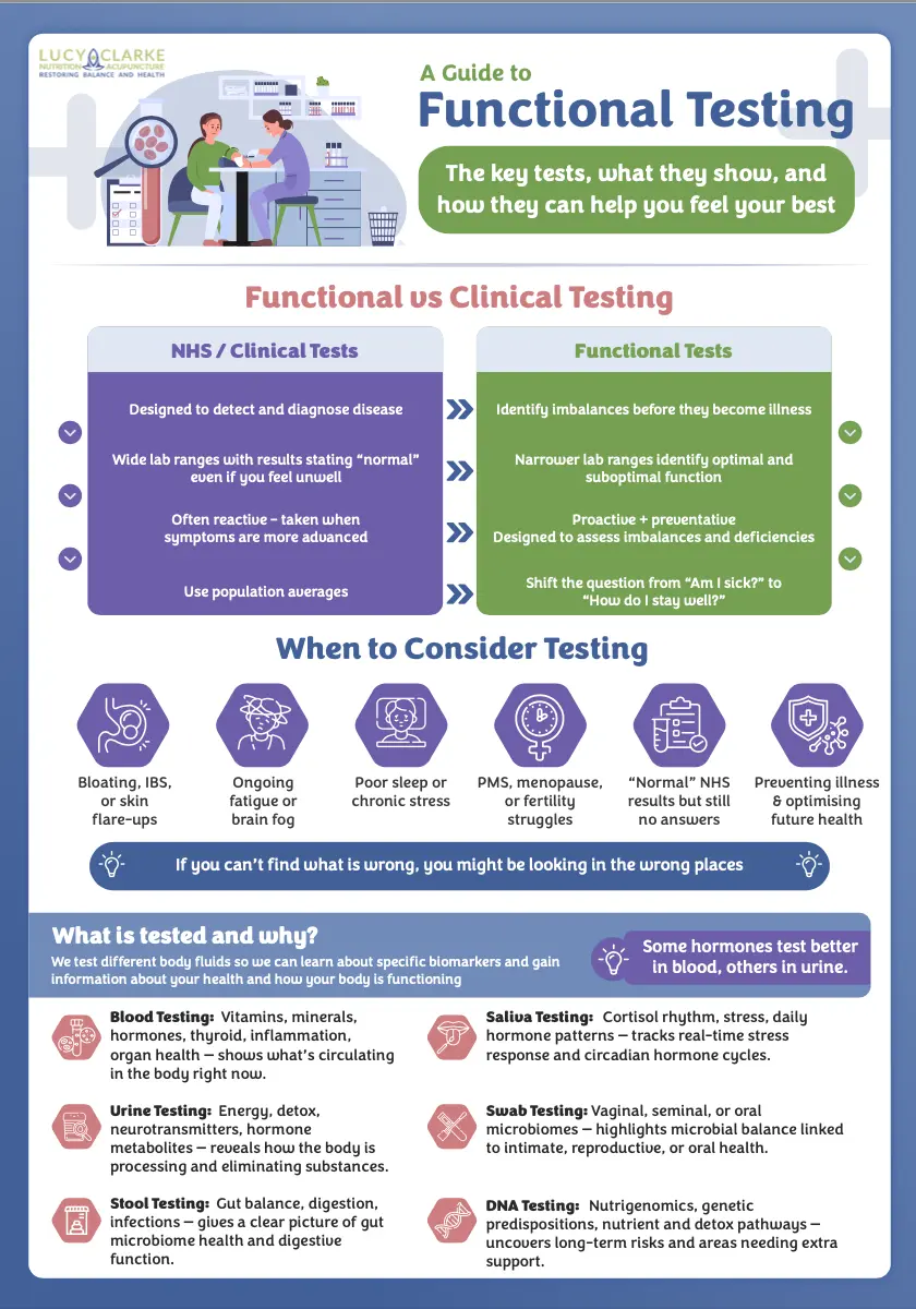 • Not diagnostic: Functional tests highlight imbalances or areas where your body might need support—they don’t replace your GP or give definitive disease labels.